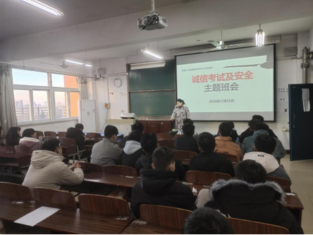 各班班会由各辅导员主持,主要围绕诚信考试这一主题展开,各辅导员向同学们介绍了诚信考试的重要性并说明了考试的相关细则和要求及相关的处罚措施,从制度上保证诚信考试工作的落实。诚信考试主题班会的开展在一定程度上端正了我院学子的考试态度,有利于营造良好的考试氛围,促进我院学风建设。