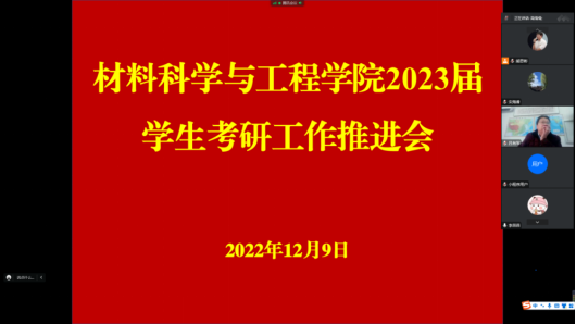 为进一步推进2023届毕业生考研工作,帮助学生解决考前疑惑,12月9日上午,我院通过腾讯会议在线召开了2023届毕业生考研交流会。学院领导、教研室主任、辅导员、毕业班班主任、教师代表、2023届考研学生及部分在校生代表共计150余人参加了会议。会议由团总支副书记熊思彬主持。