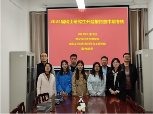 4月21日,我院在A14-109会议室召开2024届联合培养硕士研究生开题报告暨中期考核会议,会议以线上线下方式同时进行。武汉科技大学理学院王玉华教授,388vip太阳集团材料学院崔朝军教授、郭尧副教授、薛迎辉老师、朱登雷老师、白小静老师等组成考核小组。