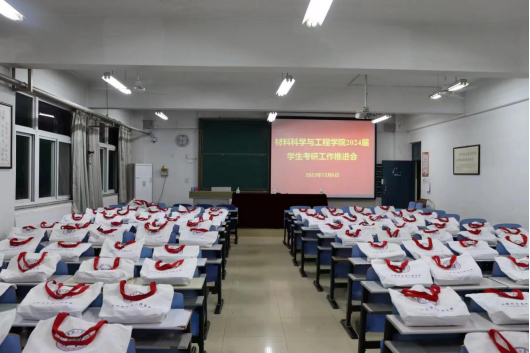 会议伊始,李国云介绍了学院2023届毕业生考研及就业情况,引导学生了解当前考研形势,树立正确的考研观念,坚定信心。高分子材料与工程教研室主任王利军对同学们给予厚望,希望大家在考试复习时沉下心来,张弛有度,争取一战成名。校心理健康教育中心常瀚老师结合自身经历,分享了考研经验和放松身心的方法。学生代表王德政分享了考研复习的方法,并鼓励同学们在冲刺阶段持之以恒,奋力拼搏,考出自己的风采。随后,宋海香院长作动员讲话,对同学们提出了三点要求:一是要有适度的紧张感,锻炼自己的抗压能力;二是坚持,不能轻言放弃;三是全力以赴,不负自己,不负青春年华。最后,各导师为同学们解答疑惑,提出了自己的看法与建议,大家积极提问,老师耐心指导,整个过程其乐融融。会后,学院为考研学生发放了考研礼包。