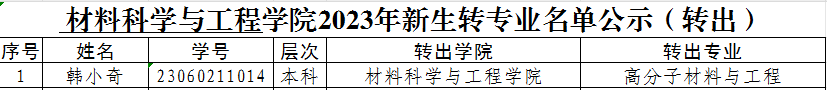 根据教育部《普通高等学校学生管理规定》(教育部第41号令)和河南省教育厅有关做好普通高等学校学籍管理工作文件精神,按照《388vip太阳集团学生转专业管理办法》,我院受理了有转专业意向的学生的书面申请,对申请转专业学生逐个进行了谈话和了解。经学院党政联席会议研究,现将2023年拟同意转入、转出学生的信息公示如下,公示期3天,从2023年12月12日至2023年12月14日,若有异议请实名向材料学院反映。公示结束后,学院将按照学校统一规定办理转专业手续。