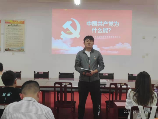 5月13日,学院学生党支部开展支部书记讲党课活动,学生党支部书记熊思彬围绕“中国共产党为什么能”这一主题,从“理论的坚定性和信仰的坚定性”“完全不谋私利、扎根于人民之中”“勇于自我革命、善于自我修正”“把政治纪律挺在前面、坚持集中统一领导”四个方面进行了详细阐述,并结合一系列重要历史事件为大家讲述了中国共产党为中国人民谋幸福、为中华民族谋复兴的初心使命和光辉历程,教育引导广大学生党员要通过学习党史,坚定理想信念,凝聚奋进力量。