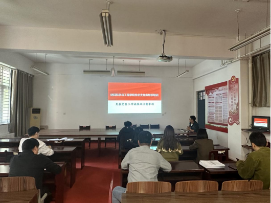 熊思彬首先带领各党支部书记、支委委员共同学习了《中国共产党章程》、《中国共产党支部工作条例(试行)》、《中国共产党普通高等学校基层组织工作条例》相关内容,并详细讲解了党员发展工作的“五个阶段”、“二十五个步骤”及相关注意事项。随后,大家围绕认真抓好基层党组织建设、加强对教工党支部和学生党支部的思想政治引领、认真抓好党支部的“三会”实效性建设,以及会议组织程序、内容和会议记录等规范化建设,进行了认真学习,并结合各党支部工作实际,就“三会一课”和主题党日活动规范化开展进行了交流、讨论。