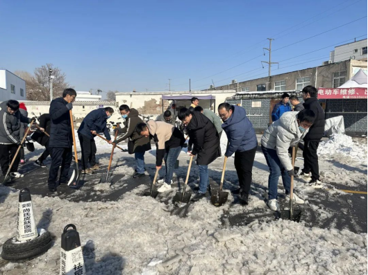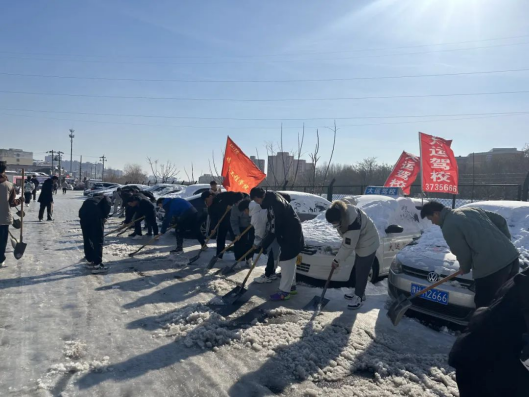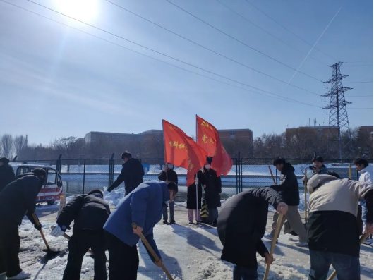 为积极应对雨雪冰冻天气,保障师生安全出行,12月17日中午,我院党总支积极响应上级号召组织师生党员五十余名在校内三里屯公寓区附近开展了道路除冰志愿服务活动。