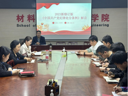4月29日下午,材料学院党纪学习教育读书班在A14-107会议室举行集体学习。党总支书记吕有军主持并讲授专题党课,学院党总支委员、各党支部委员参加。