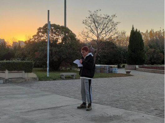 七时十分,升旗仪式正式开始。校国旗护卫队迈着整齐的步伐,护送国旗走向升旗台。在雄壮的国歌声中,鲜艳的五星红旗冉冉升起,在场的同学们神情严肃,敬礼仰注,向庄严神圣的国旗表达最崇高的敬意。升旗仪式结束后,学生会主席董麟以“请党放心、强国有我”为主题发表了国旗下的演讲。董麟号召同学们要以实现中华民族伟大复兴为己任,增强作为中国人的志气、骨气、底气,不负时代,不负韶华!