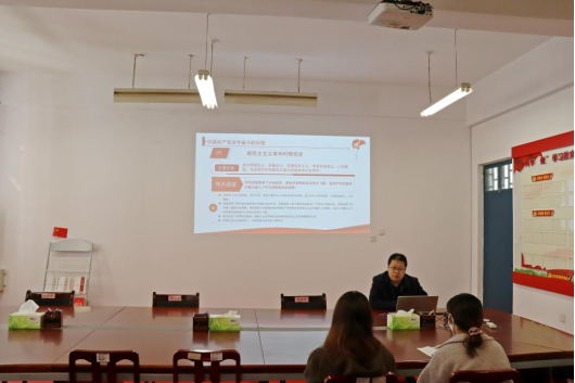 3月4日中午,党总支书记吕有军在A14-113会议室为2019级和2020级学生代表上了一堂生动的开学第一课。吕有军以“学习贯彻党的十九届六中全会精神”为主线,为同学们解读了党的十九届六中全会上作出的全面总结的党的百年奋斗重大成就和历史经验。吕有军说,风雨来袭之时,中国共产党是中国人民最可靠的主心骨;披荆斩棘之路,中国共产党是中华民族伟大复兴征程上最坚强的领导核心。吕书记精彩的讲授不时博得全场同学的掌声,同学们纷纷表示受益匪浅,正能量满满。