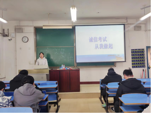 班会上,各辅导员、班主任结合学校考试纪律向同学们介绍了诚信考试的重要性,希望同学们能够培养自律意识、提高学习效果,严格遵守考试规章制度,以诚信的态度对待每一场考试,并鼓励大家调整好心态,以自信的姿态迎接考试。