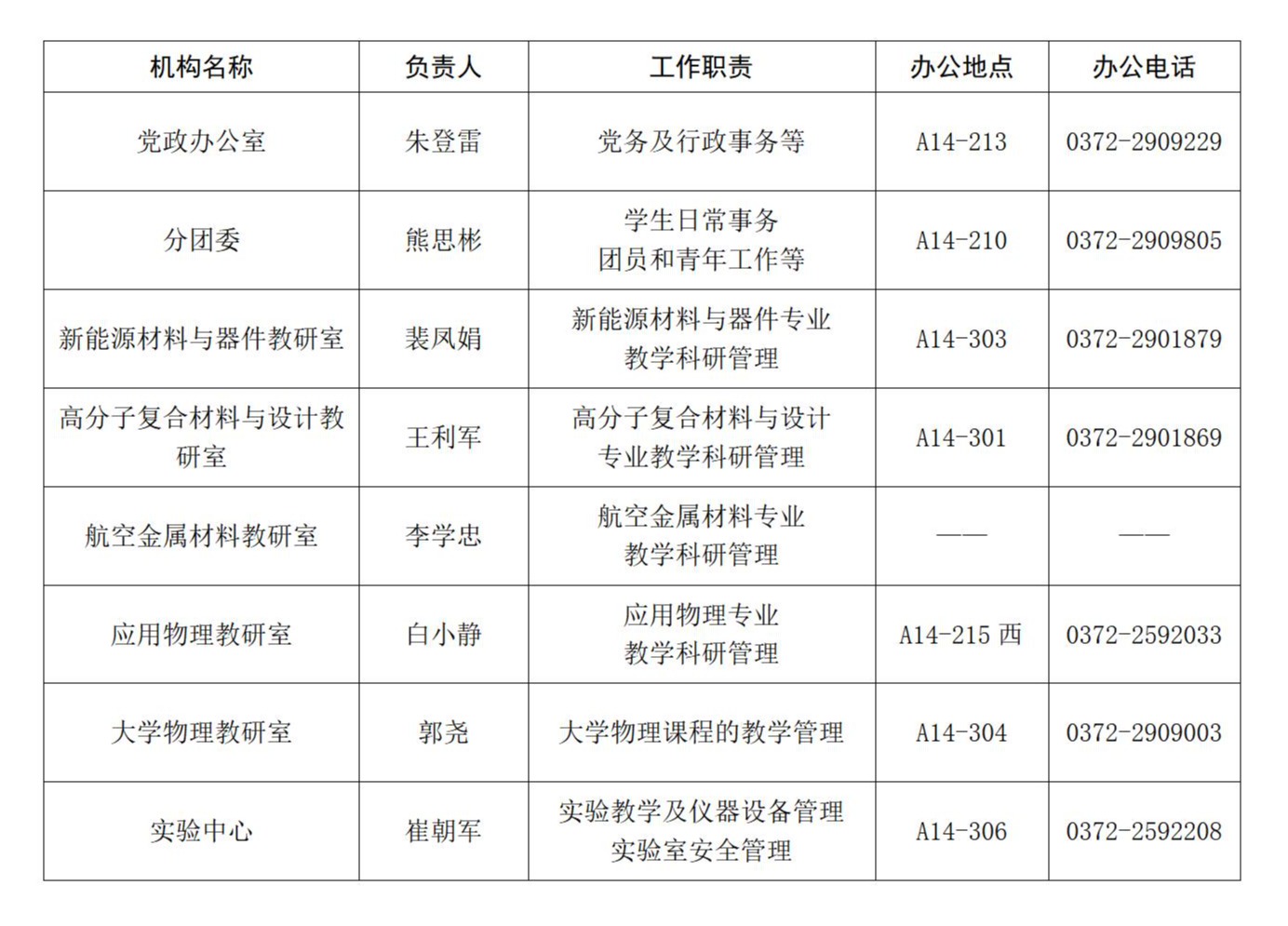 材料科学与工程学院机构设置